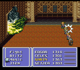 and Sabin's Fire Dance also help. Locke should attack or cure.