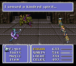 Start by having Edgar use the Drill, Sabin use Aurabolt, Locke