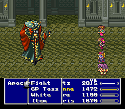 one of your members. Use Flare, Holy and Meteo to attack, Gp Toss